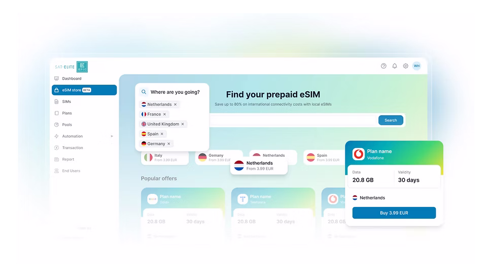 With our white-label solution, you can launch a seamless mobile connectivity platform under your name, powered by our global network, infrastructure, and 24/7 technical support.